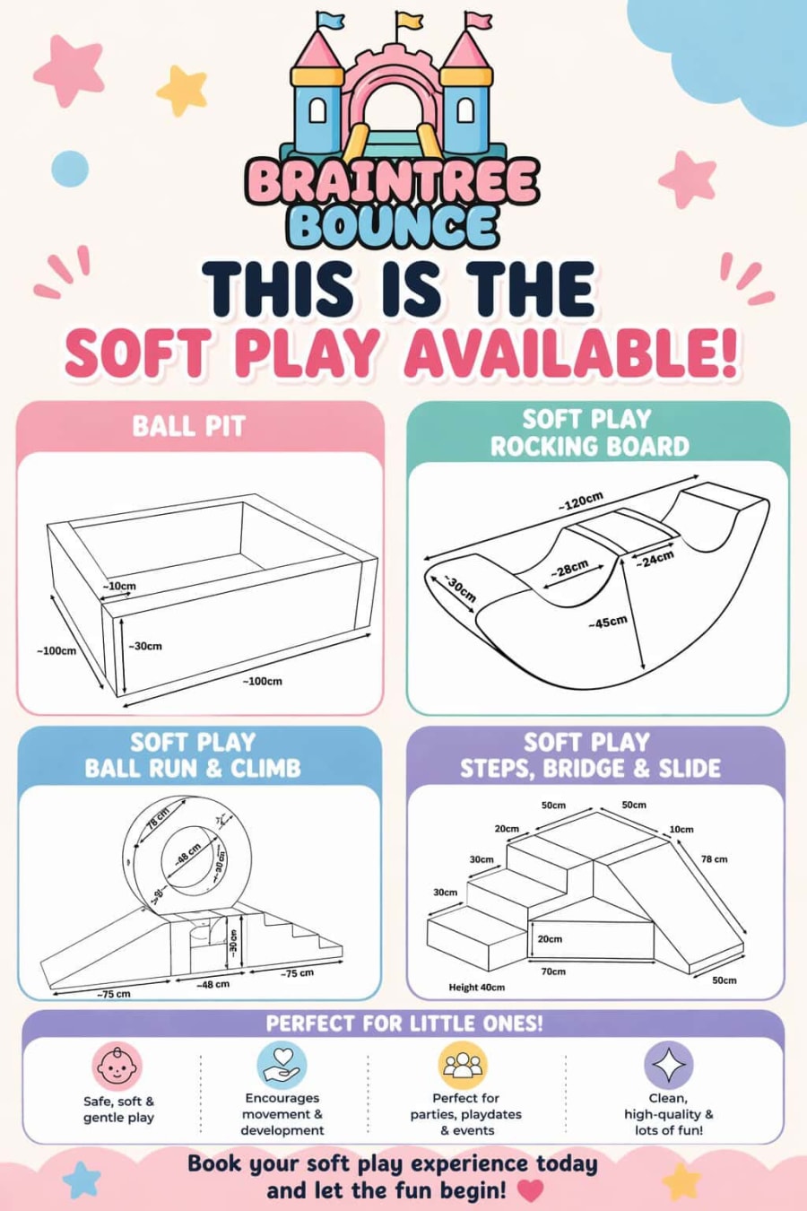 Make your little one’s party extra special with our Soft Play — safe, soft, and full of fun. Book with Braintree Bounce for stress-free Soft Play Hire and a memorable celebration! 🎂✨
